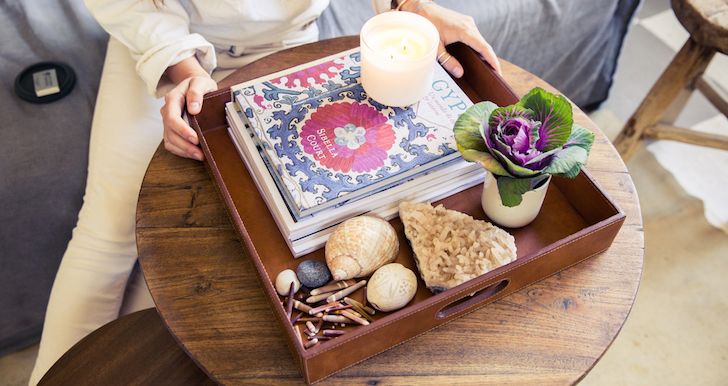 “Trays are really great items, I love big lacquered trays, and I use them a lot to help organize clutter, and to help compartmentalize things and help everything look neater.”